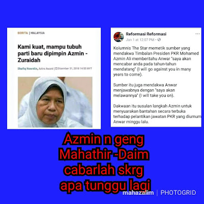 Namun ianya mendapat tentangan dari kem 'kartel' yang di ketuai oleh Azmin, sehinggakan Zuraidah mengeluarkan kenyataan, mereka sudah mempunyai kekuatan untuk menubuhkan parti baru yang di pimpin oleh Azmin Ali...
